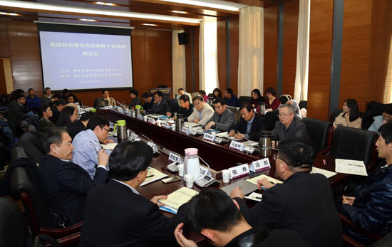 【香港商報網訊】記者邢寶華、通訊員郝靜秋 侯曉莉報道:朝鮮12日再次發射一枚彈道導彈後,美國總統特朗普13日稱,美國將以“非常强硬”的態度對待朝鮮。在此背景下,特朗普政府執政後朝鮮半島的局勢顯得更加複雜、嚴峻。如何正確研判特朗普政府的半島戰略?如何走出朝鮮半島的安全困境?中國將如何應對美日韓同盟關係?如何處理中朝韓三國關係?2月14日,圍繞這一系列問題,由朝鮮半島研究協同創新中心主辦、南開大學周恩來政府管理學院承辦的“美國特朗普政府的朝鮮半島戰略”研討會在天津南開大學舉行,來自全國的五十余名專家學者、雜志主編以及媒體代表圍繞“美國特朗普政府的朝鮮半島戰略與朝鮮半島局勢的走向”這一主題展開交流討論。