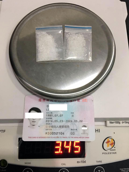 連查兩澳門男子攜毒品氯胺酮出境