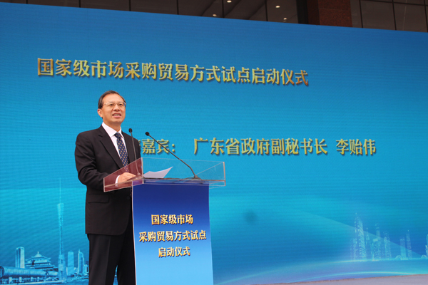广东省政府副秘书长李贻伟在致辞中指出,希望广州通过市场采购贸易方式试点,有效凝聚和统筹配置全省乃至华南区域各省市的资源,进一步做大做强自身的外贸,加快培育一批在国际国内具有优势的技术、产品、品牌、企业和产业,在服务全省大局、促进全省外贸发展中承担起更大的责任。