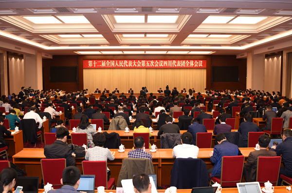 【香港商报网讯】记者金山报道:3月8日上午,中共中央总书记、国家主席、中央军委主席习近平参加十二届全国人大五次会议四川代表团的审议。当天下午,十二届全国人大五次会议在人民大会堂举行第二次全体会议,受全国人大常委会委托,张德江委员长向大会报告工作。全体会议结束后,四川代表团马不停蹄在驻地举行全体会议,专题学习贯彻习近平总书记当天上午参加四川代表团审议时发表的重要讲话精神。