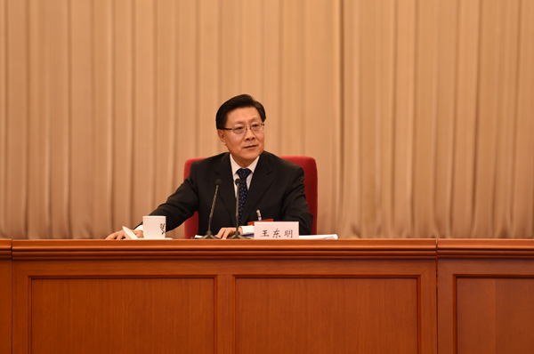 中共四川省委书记、省人大常委会主任、代表团团长王东明主持会议