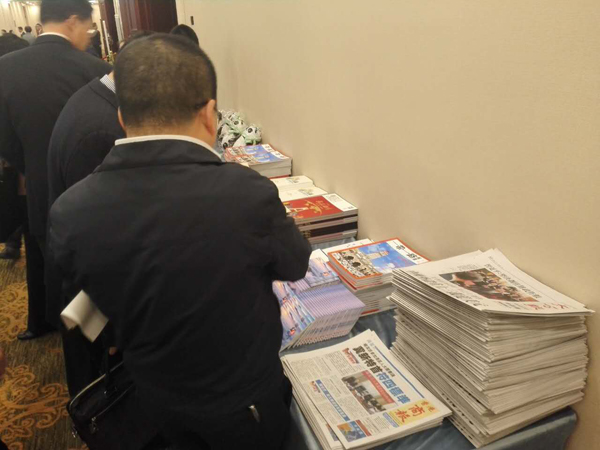 会场外摆放的香港商报