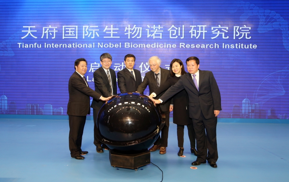 會議期間,“天府國際生物醫藥諾創研究院”揭牌落戶成都高新區。此次揭牌成立的諾創研究院由成都天府國際生物城管理委員會和成都海創藥業、淵源生物共同建立,旨在吸引更多世界頂級諾貝爾獎得主和國內外知名院士智力團隊,整合海創藥業等成都優質企業現有科研基礎和產業化能力,引領生物醫藥創新創業,推動成都天府國際生物城招商引資、成果轉化和國際競爭,加快成都國際生物產業城的建設與發展。