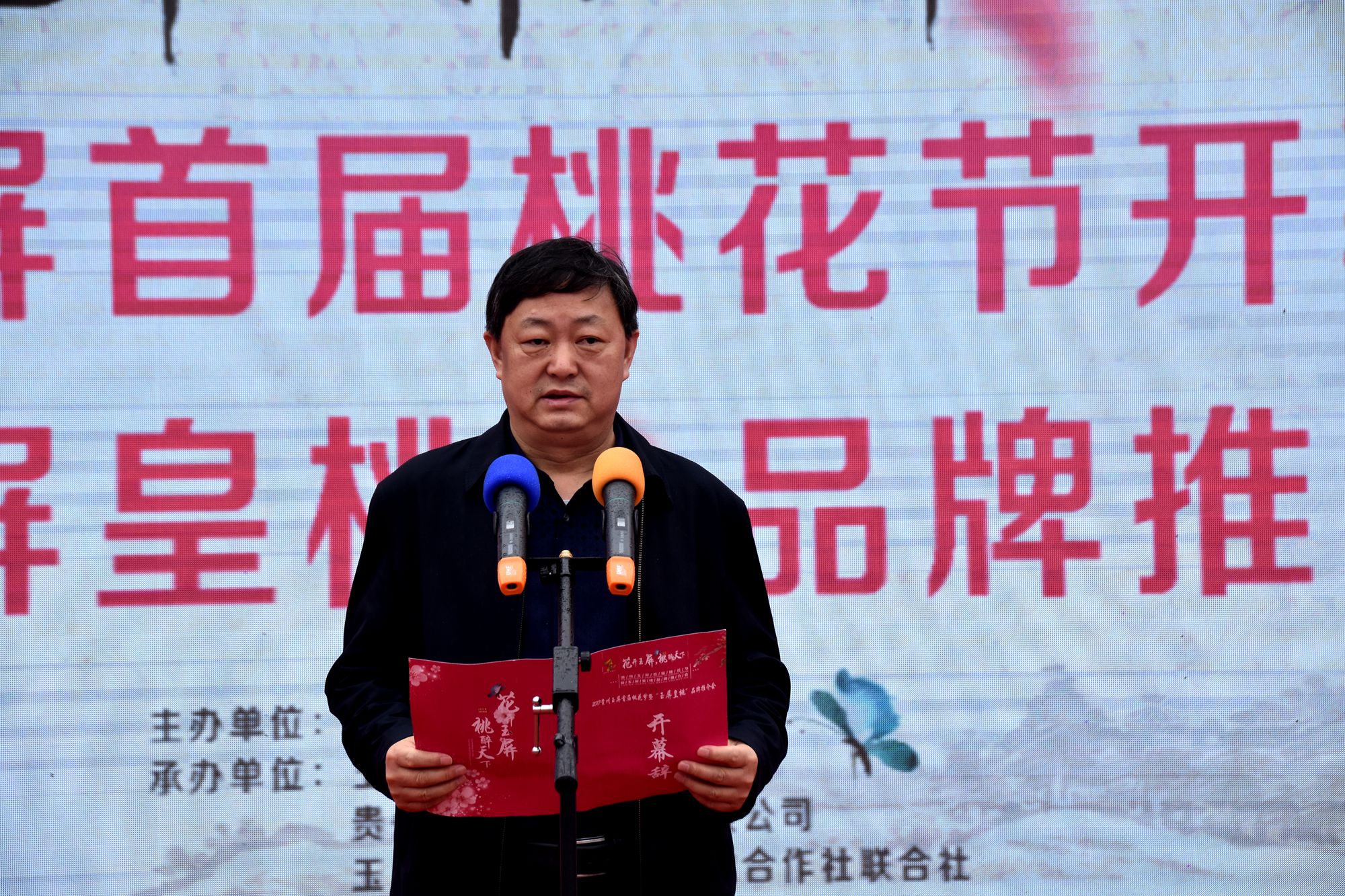 全國供銷合作社機關服務局局長陳百祿說,此次有幸前來參加“花開玉屏.桃醉天下”節感到非常榮幸。剛剛看了玉屏的宣傳片,聽了蒲章副縣長的講話,我對玉屏農業產業和特色區域經濟的發展有了新的認識和更深刻的感受。玉屏結合全域旅遊策略,走出了一條農業產業發展與休閑觀光旅遊相結合的新路子,特別是以農戶黃桃基地為單位,組成農民專業合作社,以電子商務為抓手,用大數據為媒介,把全縣黃桃合作社聯合起來,成立合作聯社,走上了一條“統一種植標准、統一管理、統一價格、統一商標品牌”的專業化、規模化、制度化、市場化的黃桃發展之路,帶動貧困戶脫貧,這種模式值得肯定。今天的玉屏皇桃品牌推介會暨2017貴州玉屏首屆桃花節,吸引了各地的果品銷售大亨和眾多遊客前來,這將會為玉屏黃桃的銷售,玉屏休閑觀光旅遊帶來新的高峰。我深信:玉屏因油茶而出名、因簫笛而享譽全國,將來一定會因黃桃而桃醉天下。