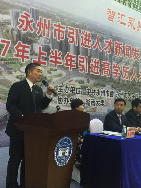 湖南大學黨委書記蔣昌忠出席會議並致辭。中共永州市委書記、市人大常委會主任李暉在會上發表了熱情洋溢的講話。中共永州市委副書記、政法委書記張嚴主持發布會。省委組織部部務委員由紅軍,湖南師范大學黨委副書記、校長蔣洪新,中共永州市委常委、常務副市長唐湘林,中共永州市委常委、組織部長吳志雄出現會議並在發布席就坐,國防科技大學、湖南農業大學、湖南中醫藥大學、湖南女子學院等高校領導也在發布席就坐。