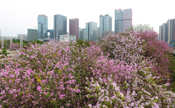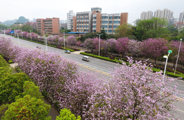 近日,廣西柳州市24萬株洋紫荊進入花期,市區數十條街道成為花海。近年來,柳州市全面打造“生態花園、五彩畫廊”花園城市,通過擴量、提質、創特色、樹品牌四個方面對花園城市進行升級改造,形成“一季為主、四季兼顧,一花為主、多花互動”四季植物景觀,24萬株洋紫荊把讓柳州形成了“紫荊花都”城市品牌。