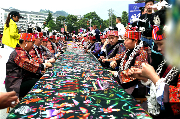 千名绣娘同时手绣22米长画卷《锦绣台江》