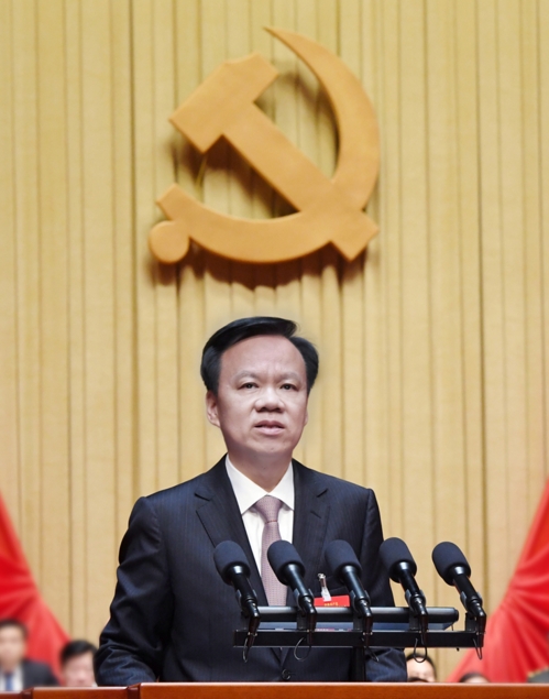 上午9时,大会在雄壮的国歌声中开幕。在热烈的掌声中,陈敏尔同志代表中国共产党贵州省第十一届委员会向大会作报告。