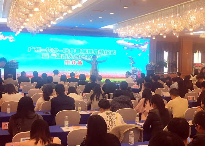 广州-长沙-吐鲁番航班启动仪式暨“湖南人游吐鲁番”推介会现场