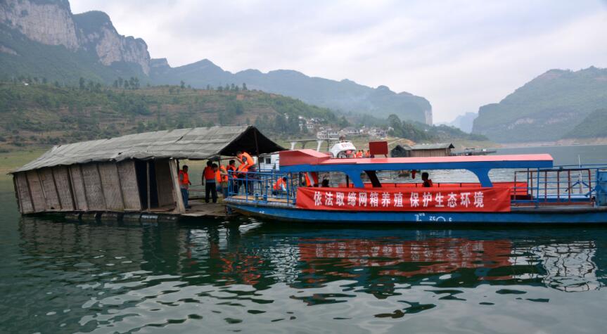 【香港商報網訊】通訊員 金玉龍、楊洪金 報道:5日,清鎮市多部門在東風湖開展聯合執法,現場拆除養魚網箱107口,3263平方米。