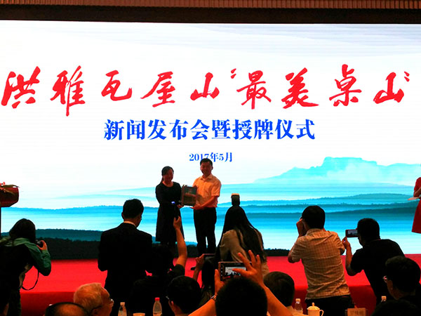 《中國國家地理》雜志社副社長才華燁代表專家團隊授予瓦屋山“最美桌山”稱號