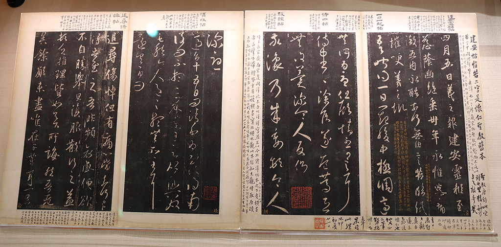 南京大學博物館的鎮館之寶為《大觀帖》宋拓孤本第六卷殘本(即榷場殘本),均為王羲之墨跡之摹本。由於此帖已是海內孤本,更是傳世碑拓中的珍品,被譽為“古代刻帖第一精品”,入選國家首批《珍貴古籍名錄》。這是傳承九百餘年、曆經多家遞藏、在中國書法藝術史上具有重要地位的國寶級文物首次在南京大學公開展出,意義非凡。