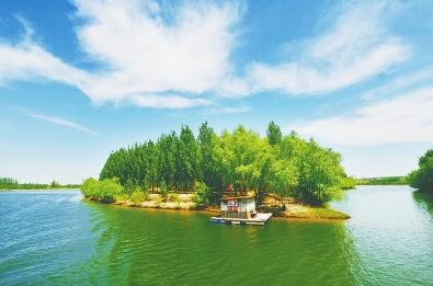 依托鶴鳴湖自然風光,山城區大力發展生態休閑觀光旅游。圖為旭鴻合作社在湖畔種植的桃樹、柳樹等已成了當地一景。趙永強攝