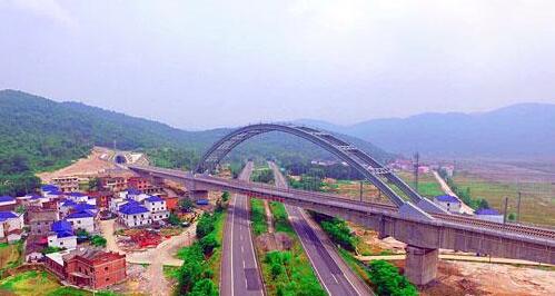 “跨杭瑞高速特大橋是全線控制性工程,連續梁拱總長312m,鋼筋混凝土連續梁跨度(76+160+76)m,截面大、節段多、施工周期長,本身施工難度就大,還要保證橋下杭瑞高速公路的正常通行,我們確實面臨不小的壓力。”項目經理武俊杰告訴記者,面對目前亞洲最大跨度的鐵路設計懸澆法砼吊桿拱梁,項目部多次研討交流后成功想出了解決之道,為項目后期施工奠定了堅實基礎。