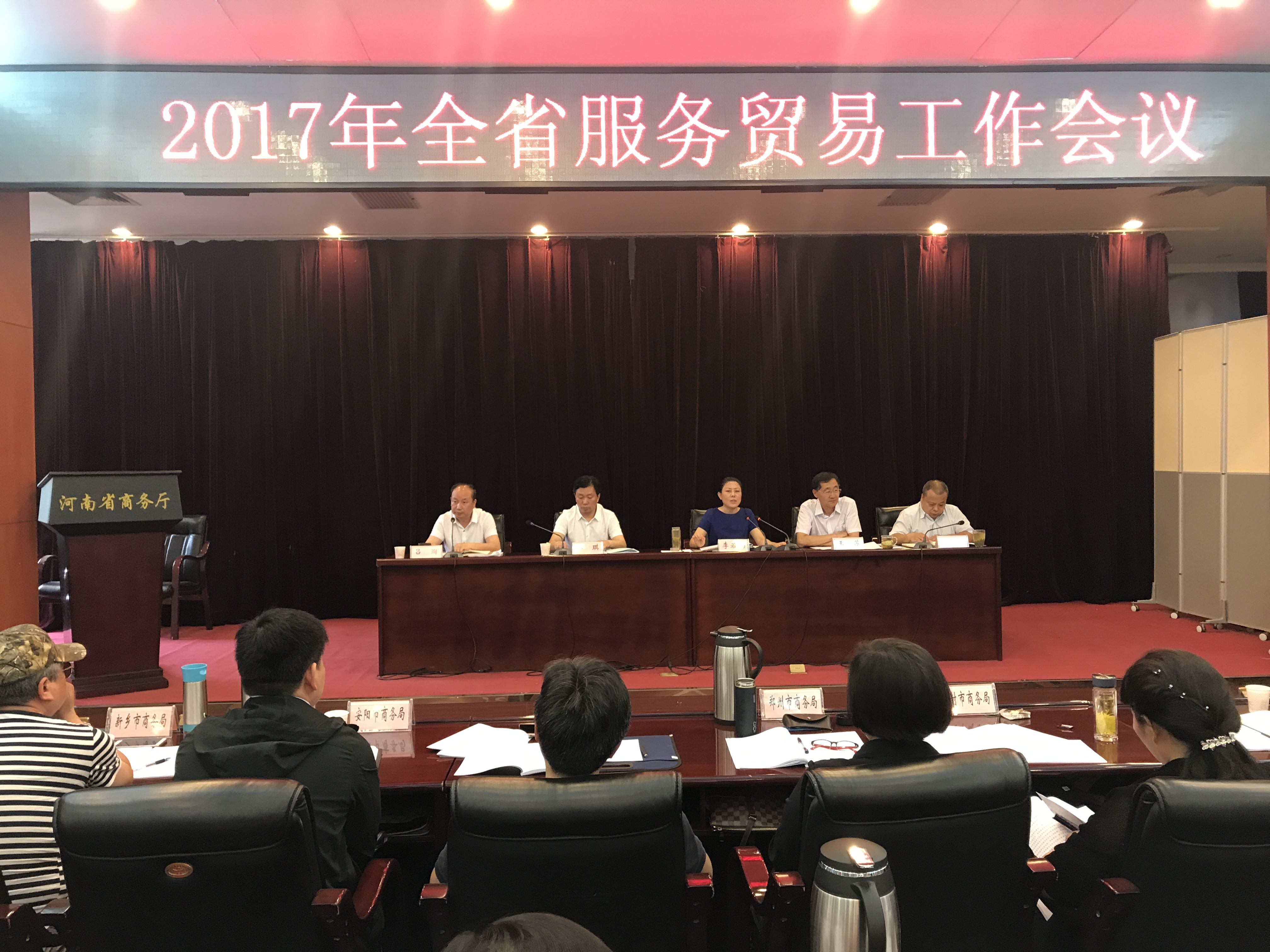 會議指出,2016年,河南省GDP完成40160億元,其中服務貿易業增加值占GDP比重為41.9%,同比增長1.7%。為全省轉變發展方式、擴大消費需求、拉動經濟增長做出了積極貢獻。2016年,河南省服務貿易額為69.46億美元,同比增長18.9%;服務貿易進出口增速高出全國平均增幅8.08個百分點,在全國服務貿易總額中占比1.48%;餐飲業收入2320.8億元,同比增長12.7%;會展業迅速發展,全省共舉辦展會373場,辦展面積354.56萬平方米,位居全國第十位,其中鄭州市經貿類會展已在全國會展城市排名第4位;服務外包工作取得明顯成效,截至2016年12月底,河南省共有服務外包企業1342家,累計接包合同簽約額28.91億美元,接包合同執行額20.36億美元,並且與“一帶一路”沿線國家的經貿合作逐步加深。