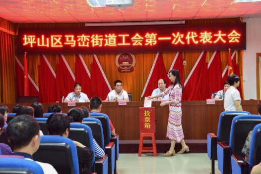 【香港商報網訊】記者焦家志 通訊員吳彩雲 吳玲敏報道: 5月18日,坪山區馬巒街道辦事處工會第一次代表大會隆重召開。街道71位幹部、職工代表參加會議,大會根據《選舉辦法》選舉產生了馬巒街道第一屆工會委員會委員、經費審查委員會委員和女職工委員會委員。