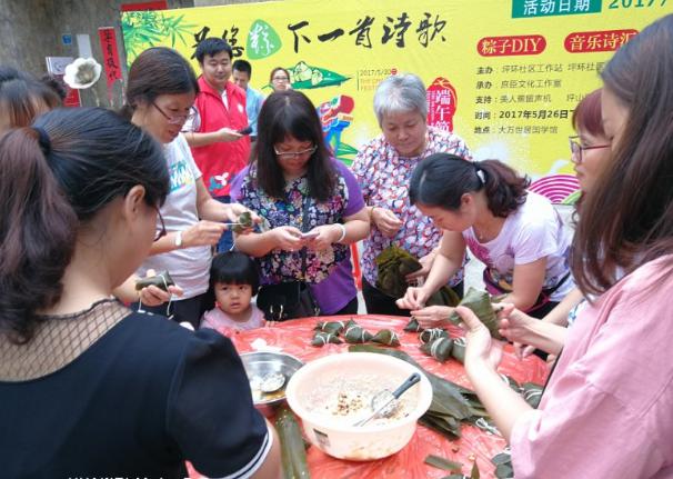 【香港商報網訊】記者焦家志 通訊員段慶華 吳玲敏報道:5月26日下午,為感受端午節傳統文化魅力,提升市民文化素養,活躍社區群眾文化,由坪山坪環社區黨群服務中心主辦,社區計生辦、工青婦、老人協會協辦的“為您‘粽’下一首詩歌”為主題的端午節文化活動在大萬世居國學館舉行,來自社區居民、外來青工、愛之光義工60餘人參與。
