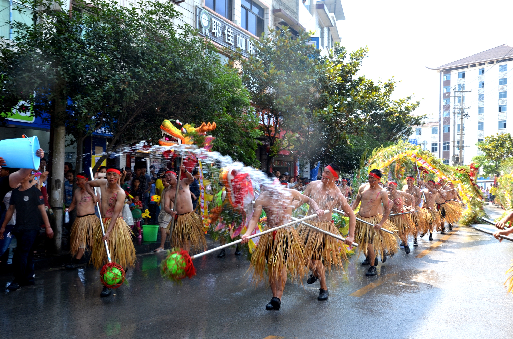 據了解,水龍表演是平塘自古以來悠久的布依民族民間風俗,水龍街道狂歡巡舞寓意風調雨順、五穀豐登、消災降幅、吉祥如意、國泰民安。耍“水龍”時,由個體經營戶、建築工人、農民群眾等不同社會階層民眾組成的九條水龍走街串巷舞動翻騰,全城群眾潑水狂歡,所經之處每家每戶用瓢、桶、盆、水槍等盡情地向水龍潑灑,既具舞龍之美,又兼潑水之樂,充滿著濃鬱的民族生活氣息,現場熱鬧非凡,將一年來各族群眾求吉祥、盼如意的良好夙願得表達淋漓盡致。