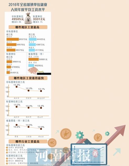 2016年,全省城鎮單位就業人員平均工資平穩較快增長,可你知道省轄市里,誰排前三嗎?在省直管縣(市)里,誰又排第一?