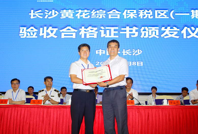 【香港商報網訊】記者張思靜報道:8日上午,長沙黃花綜合保稅區順利通過由海關總署牽頭,國家發改委、財政部等10部委組成的國家聯合驗收組驗收,並取得《綜合保稅區驗收合格證書》。這標志著湖南省唯一的臨空綜合保稅區—長沙黃花綜合保稅區已基本具備封關運行條件,即將正式封關運行。