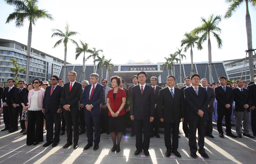 深圳市副市長吳以環、香港大學校長馬斐森、深圳衛計委主任羅樂宣、港大深圳醫院院長盧寵茂及醫院400多位深港員工共同見證了這一盛典。港大深圳院長盧寵茂教授在升旗儀式上說道:“作為深港攜手推動醫療改革的試點,港大深圳醫院融會深港文化,既傳承香港大學百年明德格物的基因,也流淌著深圳特區改革創新的血液。醫院全體同事共同努力的目標,就是希望開創一個公平、透明而高效的公立醫院新模式,全力營造公平、公益、兼顧質量和效率的綠色醫院文化,這就是‘綠色醫療’的理念。”盧寵茂表示,未來五年,醫院將全力發展醫、教、研三位一體,爭取為國家醫療改革交出一份新答卷。