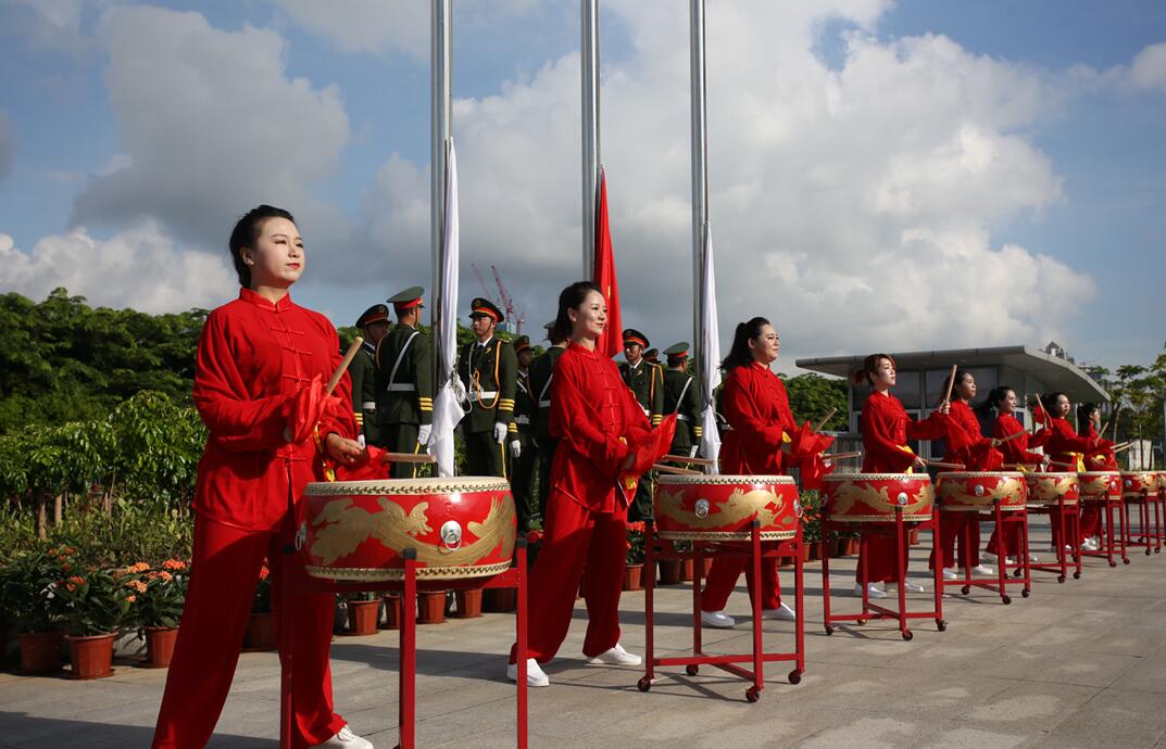 6月30日上午8點,香港大學深圳醫院舉行升旗儀式,鼓手們敲起熱烈的鼓聲。