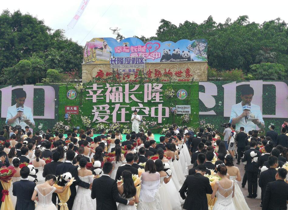 當天的長隆野生動物世界洋溢著滿滿的幸福,長隆集團首席執行官李登海表示,長隆旗下各主題公園一直是傳遞歡樂、傳承幸福的地方,今年恰逢長隆野生動物世界20周年大慶,長隆免費舉辦超大型、非一般的空中集體婚禮,希望能喚醒大眾對於婚禮儀式感及幸福婚姻的重視,充分發揮長隆在主題公園、主題酒店的優勢,結合場景化定制,為227對新人們送上了一場不同尋常的幸福曆程。