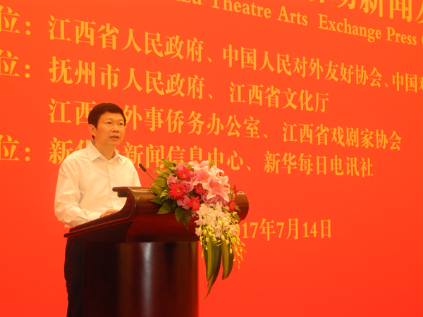 汤显祖国际戏剧交流活动新闻发布会现场 抚州市人民政府市长张鸿星发言