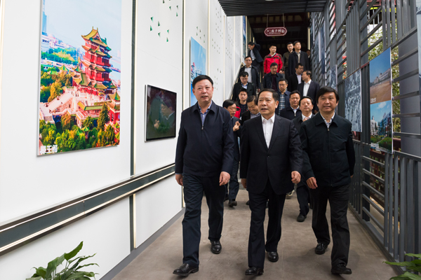 江西省委常委、南昌市委書記殷美根(前列中)、市長郭安(前列左)視察全市旅遊工作成就展覽