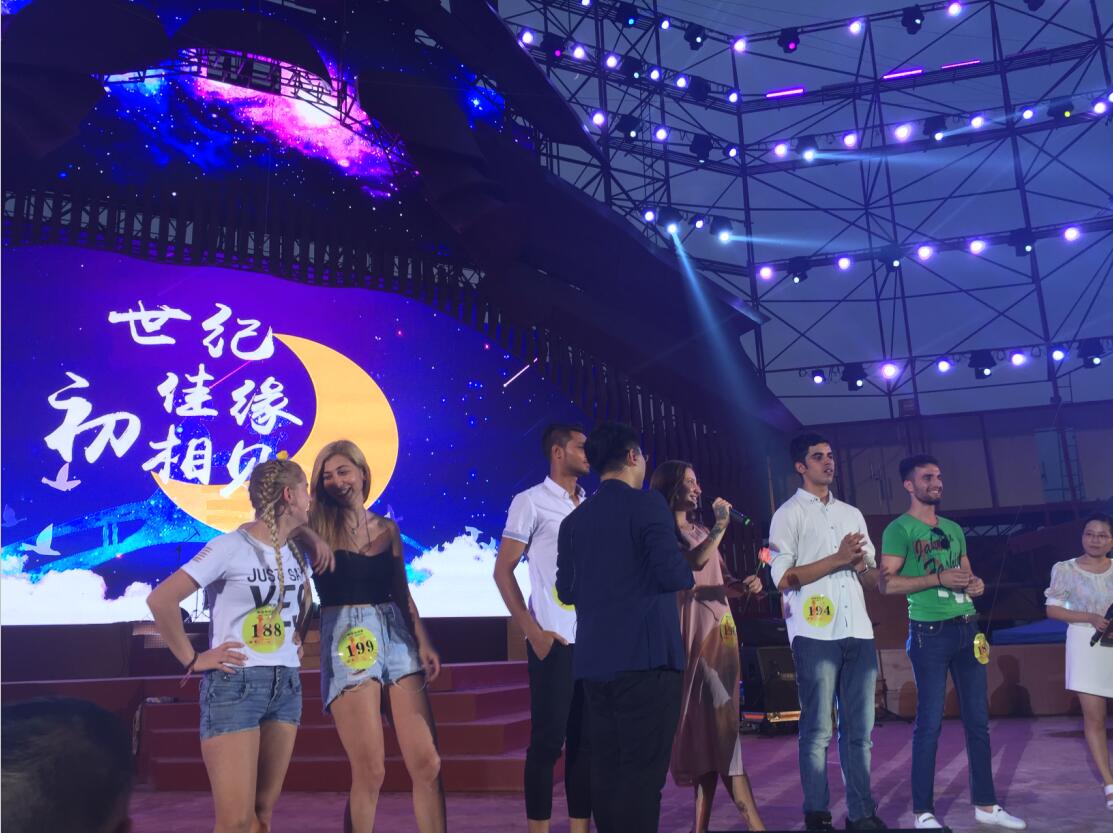 據了解,除了26七夕主題日晚的狂歡夜活動外,羅文涂鴉村的燈展將一直持續至28日。本次活動除了給單身男女青年提供交友平臺外,還希望通過七夕花海相親會,吸引全球各地游客來南縣品嘗小龍蝦、欣賞接天映日的蓮湖美景、碧波蕩漾的洞庭濕地,還有一年四季不同的花海。參與活動的外籍美女,“我在默契考驗小游戲中注意到她,她頭腦敏捷、乖巧安靜,是我喜歡的類型。”來自俄羅斯的男青年埃迪說,在長沙讀書兩年的他,已經愛上了中國,希望能找到一個中國姑娘攜手同行。“作為外地在南縣工作的單身青年,遠離家人,特別感到孤單,平時工作比較忙,顧不上找朋友,感謝這次活動能給我們提供這么一個交友的機會。”多位嘉賓也紛紛這樣表示。“這是一個與愛情邂逅、與詩意相遇的夜晚,期待在場的單身青年能共同架構起愛的橋梁,開啟一場浪漫而溫馨的七夕邂逅之旅。”中共南縣縣委常委、組織部部長肖娟說,為了讓來益陽的眾多高學歷、高水平的人才安心工作,南縣要給予人文關懷,解決婚戀需求,同時讓外地人看到益陽姑娘的美麗、溫柔和多情,吸引和集聚一大批高層次人才來益陽扎根和創新創業。