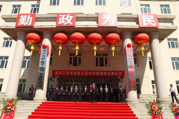 【香港商報網訊】通訊員張旭光、王天馳、記者張春寧報道:9月3日上午,樺南林業局局機關前院200多名身著正裝的林業局領導幹部、職工成方陣“列隊”,等待著一個重要曆史時刻的到來……。9點58分,隨著一抹紅紗的滑落,樺南重點國有林管局正式掛牌,已有65年開發建設史的樺南林業局正式更名為樺南重點國有林管理局。至此,黑龍江森工系統所屬松花江、牡丹江、合江“三江”林區的23個林業局全部完成重點國有林區管理局的組建、掛牌工作,這也標志著龍江森工政企、政事、事企、管辦“四分開一轉型”的重點國有林區改革又邁出了堅實有力的一步。