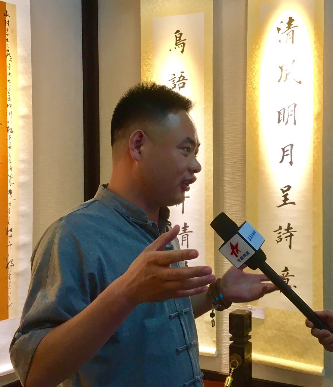 著名青年書法家劉慈黎在現場接受媒體專訪