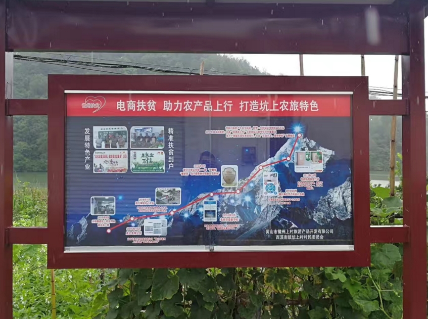 2015年下半年,在驻村扶贫干部王毅珏的带动下,村集体出资20多万元成立了黄山市徽州上村旅游产品开发有限公司,注册了“西溪南上村”品牌,组建了电商团队,将农户家特别是贫困户家富余的农产品放到网上进行销售,正式走上了发展电商之路。