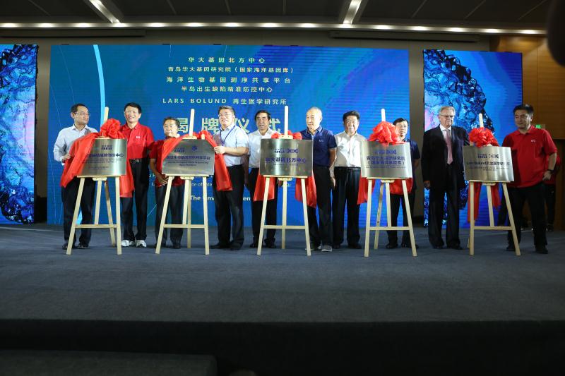 據悉,本次會議由深圳華大生命科學研究院、深圳國家基因庫、青島西海岸新區管理委員會主辦,青島華大基因研究院、青島中德生態園管理委員會承辦,青島市科學技術局、青島市衛生計生委、青島市農委、青島市海洋與漁業局、青島市科協共同協辦。啟用儀式上,英國帝國理工大學教授Suren R Sooranna為西海岸新區授牌,宣布西海岸新區成為“全球首個百萬級人口城區實現基因檢測民生全覆蓋”。深圳國家基因庫主任、華大農業集團董事長兼總裁梅永紅宣布國際海洋基因組學聯盟在青島中德生態園成立,並與奧本大學農漁業及水產養殖學院教授Rex Dunham共同為國際海洋基因組學聯盟揭牌。華大基因北方中心、青島華大基因研究院、半島出生缺陷精准醫學中心等一同掛牌。