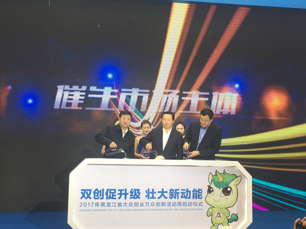 【香港商报网讯】记者张春宁报道:9月15日上午,2017年黑龙江省双创活动周启动仪式在哈尔滨正式举行。此次启动仪式由黑龙江省人民政府主办,哈尔滨市人民政府承办,活动地点设在国家双创示范基地-哈尔滨新区。黑龙江省人民政府常务副省长李海涛,哈尔滨市委副书记、市长宋希斌、市委常委、常务副市长康翰卿、市委常委、松北区区委书记高大伟等领导出席,省直各有关部门、市直各有关部门主要负责同志出席。省内外孵化器、创客空间、创投机构等各界创业创新机构负责人、企业家及个人代表,大学生、科技人员、农民、城镇转移就业人员等各类创新创业主体代表和媒体代表500余人参加启动仪式。常务副市长康翰卿主持启动仪式。