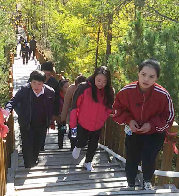在户外森林穿越活动中,来自全国各地的60余家旅行社、车友会、400多名游客,以及100余名新闻媒体、摄影爱好者组成的登山队伍,绵延1公里,登上了国家3A级景区主峰1404米的小白山,省级地质公园苍山石林,观赏中国最美秋色,探寻石林奥秘,在路途中,还通过举行森林体验寻宝活动等内容,增添了活动乐趣。