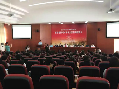 此次大赛颁奖典礼由湖南省政法系统书画诗词研究会副会长刘永祥主持。湖南第一师范学院童小娇校长为典礼致欢迎辞,她表示,此次毛体书法大奖赛的活动意义重大,毛体书法是中华优秀传统文化,作为有「千年学府、百年师范」美誉的第一师范,有责任传承和发展宝贵文化遗产——毛体书法艺术。陈焕文会长通报了大赛的有关情况和获奖作者,获奖代表陕西毛泽东书法研究会会长毛民海发表获奖感言。