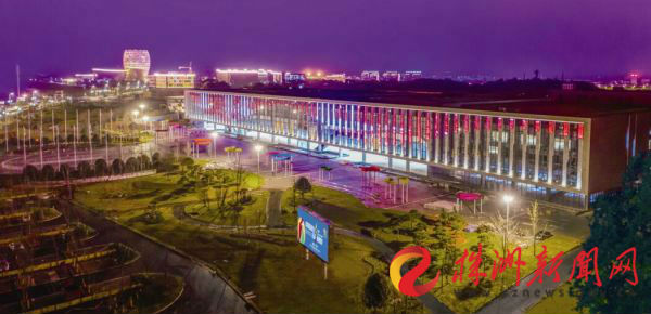 ▲ 夜幕下的中国陶瓷谷国际会展中心流光溢彩,与不远处的醴陵瓷谷交相辉映。(张斌摄)