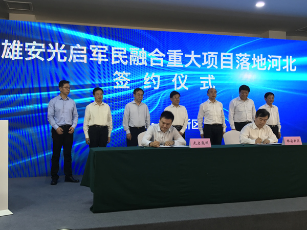 签约仪式上,河北省省委常委、常务副省长袁桐利与光启集团总裁刘若鹏代表河北省人民政府、光启签订了合作备忘录,双方将通过合作,助力雄安新区千年之城建设,助推河北省高端装备和新材料产业转型升级,促进河北省战略性新兴产业加快发展;推动光启在更高层次、更大区域实施技术创新和产业布局,提升综合竞争力,加快企业实现跨越式发展。