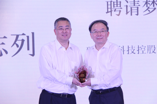 江苏省委常委、无锡市委书记(右一)向陈志列颁发小镇荣誉镇长聘书
