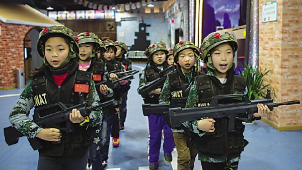 诺亚方舟儿童职业体验馆内,小朋友们体验军事项目