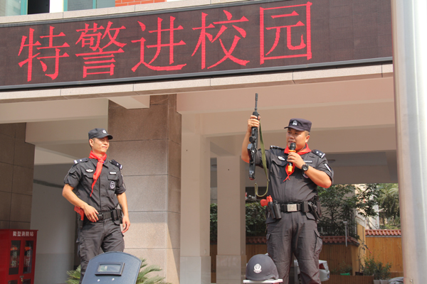 通过特警「现身说法」的讲解和展示,增强了学生的爱国意识,激发孩子们肯吃苦、有耐心、不轻言放弃的精神。