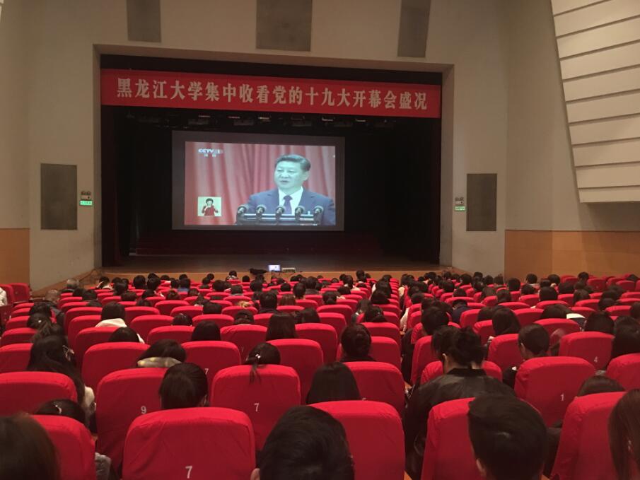 【香港商报网讯】通讯员魏新喻、祁绘羽、记者张春宁报道:18日,中国共产党第十九次全国代表大会在人民大会堂隆重召开。黑龙江大学全体校领导、中层干部、思想政治理论课教师、各民主党派代表、离退休老干部以及部分师生代表等2000余人集中观看了开幕会盛况,各学院还分别在专业教室和教研室组织师生收看,其他学生和学校教职工自发在寝室、食堂收听收看。