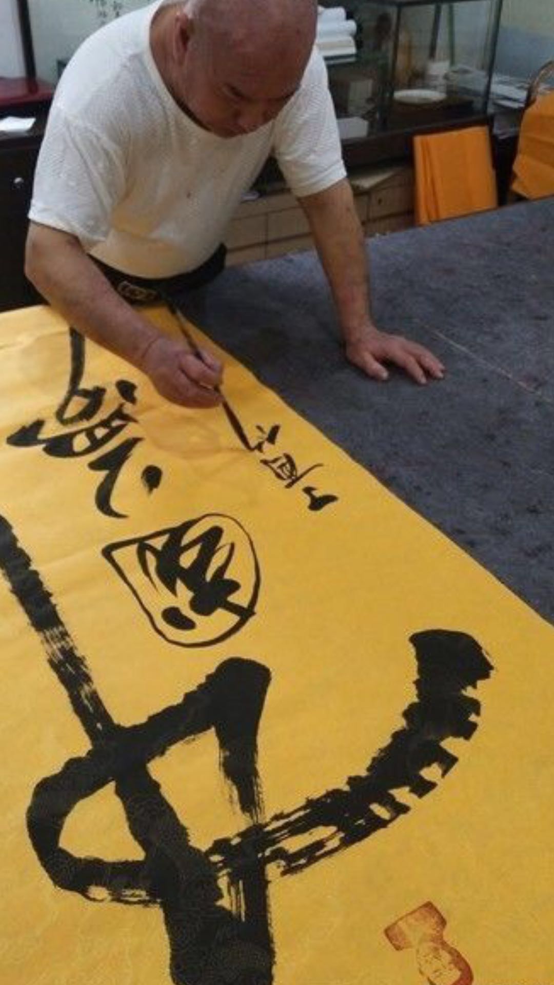 观看倪继周先生书写“中国梦”是一种享受。自从习近平提出“中国梦”以来,他一直在书写“中国梦”,几乎每天都写。究竟写了多少幅,自己也说不清了。