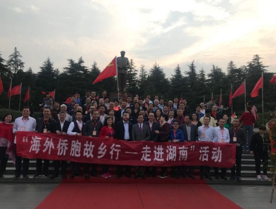 【香港商报网讯】记者刘洗涌报道:10月22日,湖南省侨联举办的2017“海外侨胞故乡行——走进湖南”活动走进伟人故里——湘潭韶山,湖南省侨联党组书记朱建山、湖南省侨联副主席孙民生、湖南省侨联副巡视员郭剑虹等领导与100多名来自美国、德国、法国、俄罗斯、中国澳门等30多个国家和地区的侨领侨胞一起,怀着无比神圣的心情参观了毛主席故居,随后齐聚毛主席铜像广场向伟人表达缅怀之情。