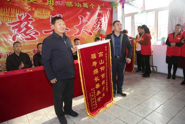 揭牌仪式在国歌声中拉开了帷幕。会议举行了捐赠仪式,郝光明代表深圳前海荣格集团董事会主席孙会喜先生为营口慈善幸福院捐赠了伍万元作为慈善院的启动资金,荣格集团领导人郝怡颖捐款现金一万元,会议收到款物折合近八万元。哈尔滨市眼科医院协同宾县蔡氏眼镜公司为营口村的老年人进行了眼科体检,并对老年人赠送了老年镜;宾县人民商城二楼南方窗帘专柜为老人捐赠了二十套棉被;宾县文工团为老年人进行了专场演出,营口村秧歌队进行了即兴表演。