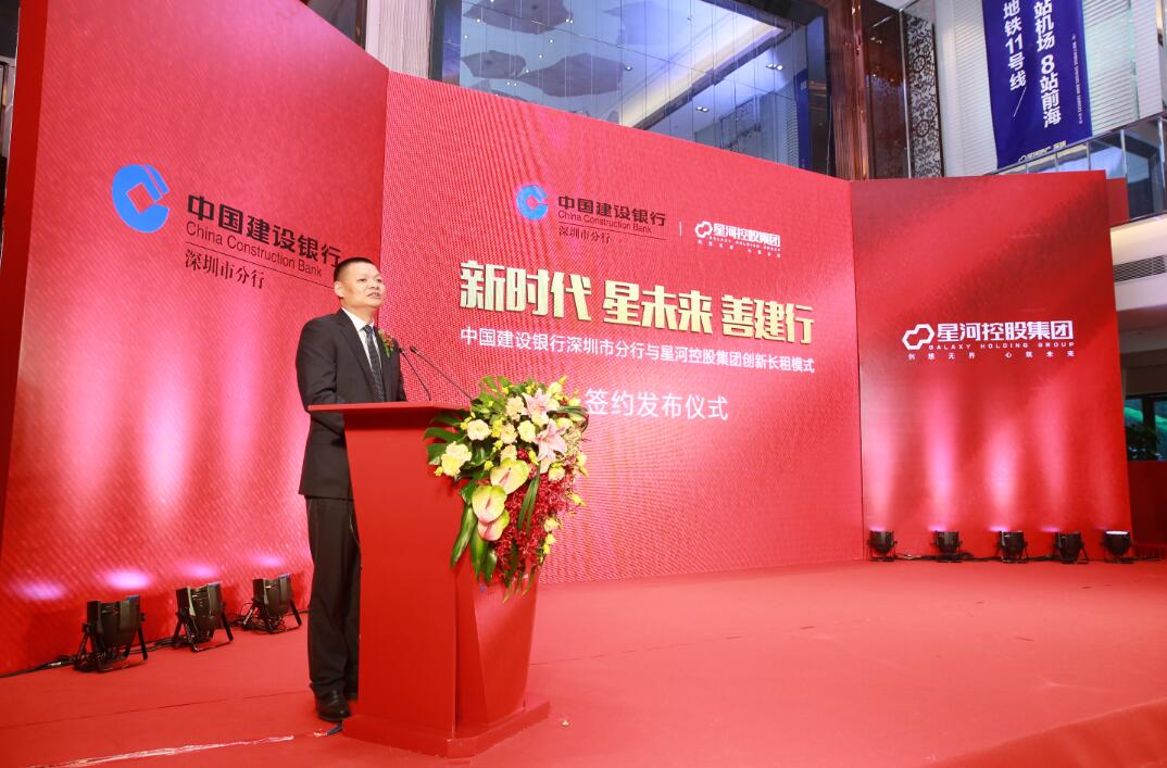【香港商报网讯】记者吴伟报道:2017年11月16日,星河控股与中国建设银行深圳市分行创新长租模式发布,正式推出“CCB建融家园·星河荣御”长租社区项目。中国建设银行深圳市分行行长王业、副行长张跃云,宝安区住建局副局长廖远滨,深圳市宝安人才安居公司总经理周自力,建信住房服务(深圳)有限责任公司监事崔建玲,星河控股集团董事长黄楚龙、副董事长兼总裁姚惠琼等领导出席发布会仪式。星河控股集团副董事长、总裁姚惠琼表示,这是星河试点商品房开发销售与租赁经营一体化运作模式的一次重要尝试,将颠覆传统意义上的租房模式,给深圳人才提供高端的居住服务。
