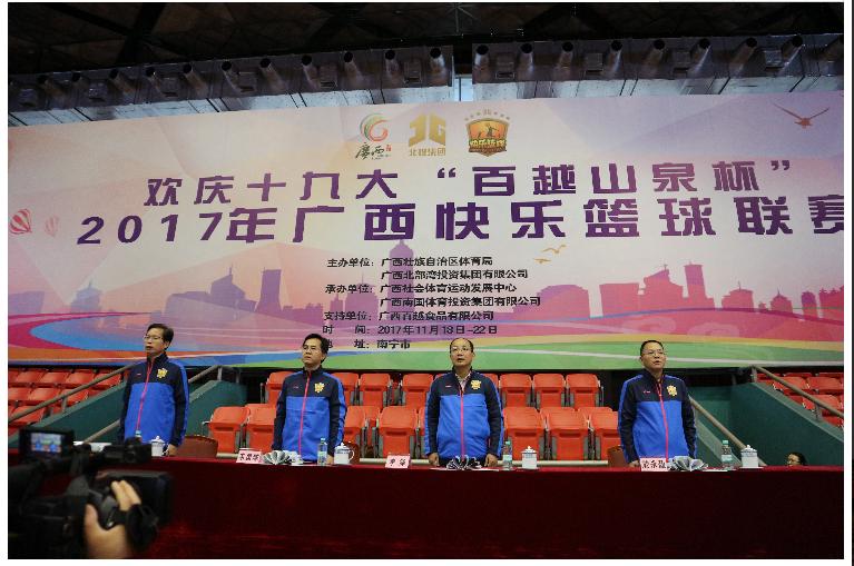 【香港商报网讯】记者欧阳萍报道:11月18日上午,由广西北部湾投资集团主办的“欢庆十九大-百越山泉杯”2017广西快乐篮球联赛在广西体育局举行开幕式。本次联赛旨在通过开展趣味性与竞技性相互兼容的群众性体育运动,推广科学体育健身方法,使群众体育运动成为推动广西体育工作发展的强大动力。
