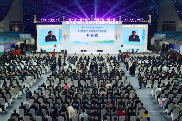 【香港商報網訊】記者張思靜報道:22日上午,第八屆湘商大會暨第五屆湘南投洽會在郴州市拉開帷幕。上汽大眾、廣汽菲亞特、九興控股等來自世界500強、中國500強、中國民營500強的知名企業,銀行、證券、保險等金融機構,海內外200多家湖南異地商會,湖南省內民營企業家的代表以及兄弟省區市代表團彙聚一堂,助力深入實施“創新引領、開放崛起”戰略,著力推進“對接500強、提升產業鏈,對接湘商會、建設新家鄉”專項行動,加快建設富饒美麗幸福新湖南,不斷開創湖南改革發展新局面。