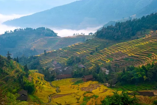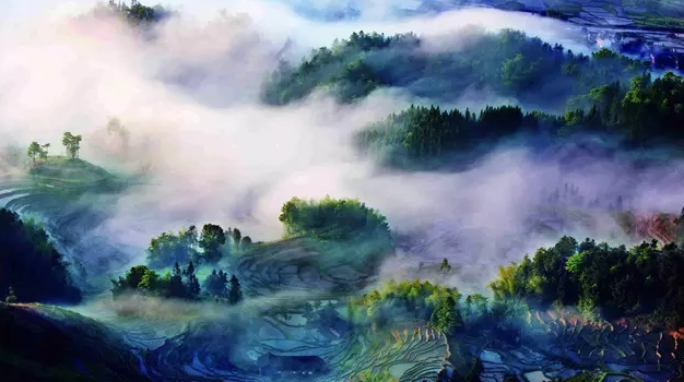 紫鹊界梯田位于湖南省娄底市新化县水车镇、隶属雪峰山余脉的奉家山地段,核心景区拥有梯田2万余亩,是首批世界灌溉工程遗产,国家级风景名胜区、国家水利风景区、国家AAAA级旅游景区,国家首批自然与文化双遗产地,并被纳入中国重点农业文化遗产名录。
